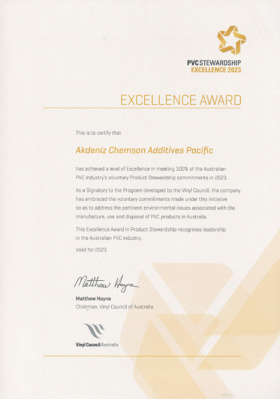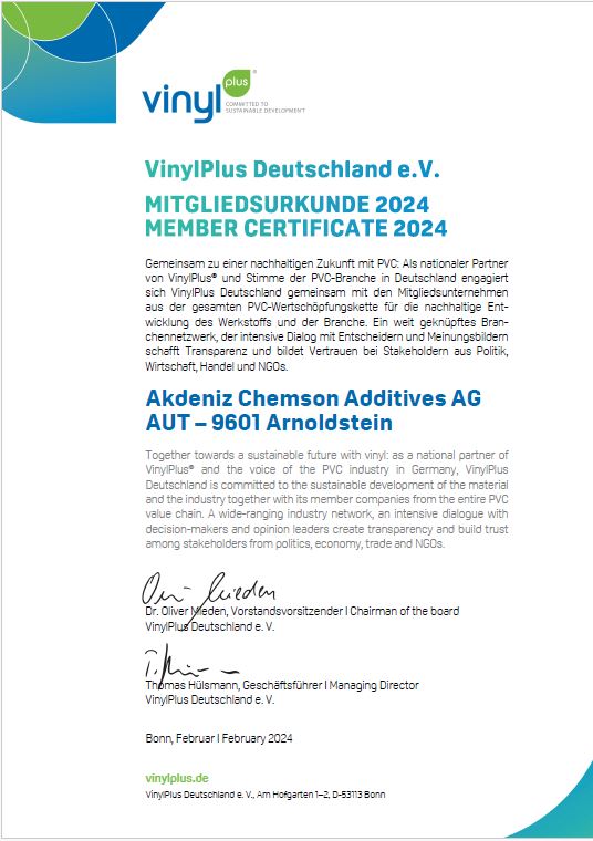 Certificado Akdeniz Chemson VinylPlus Membership 2024