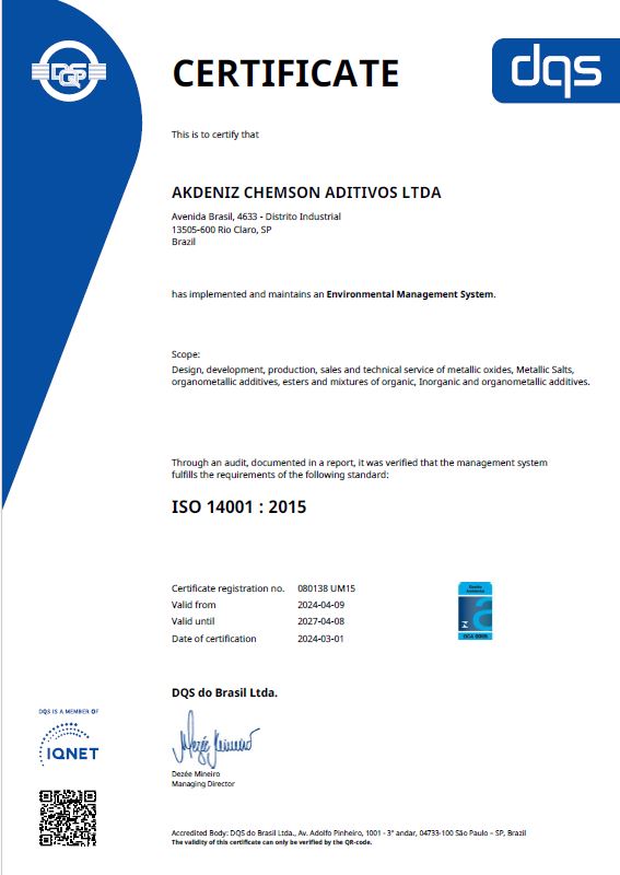 Akdeniz Chemson Aditivos ISO 14001