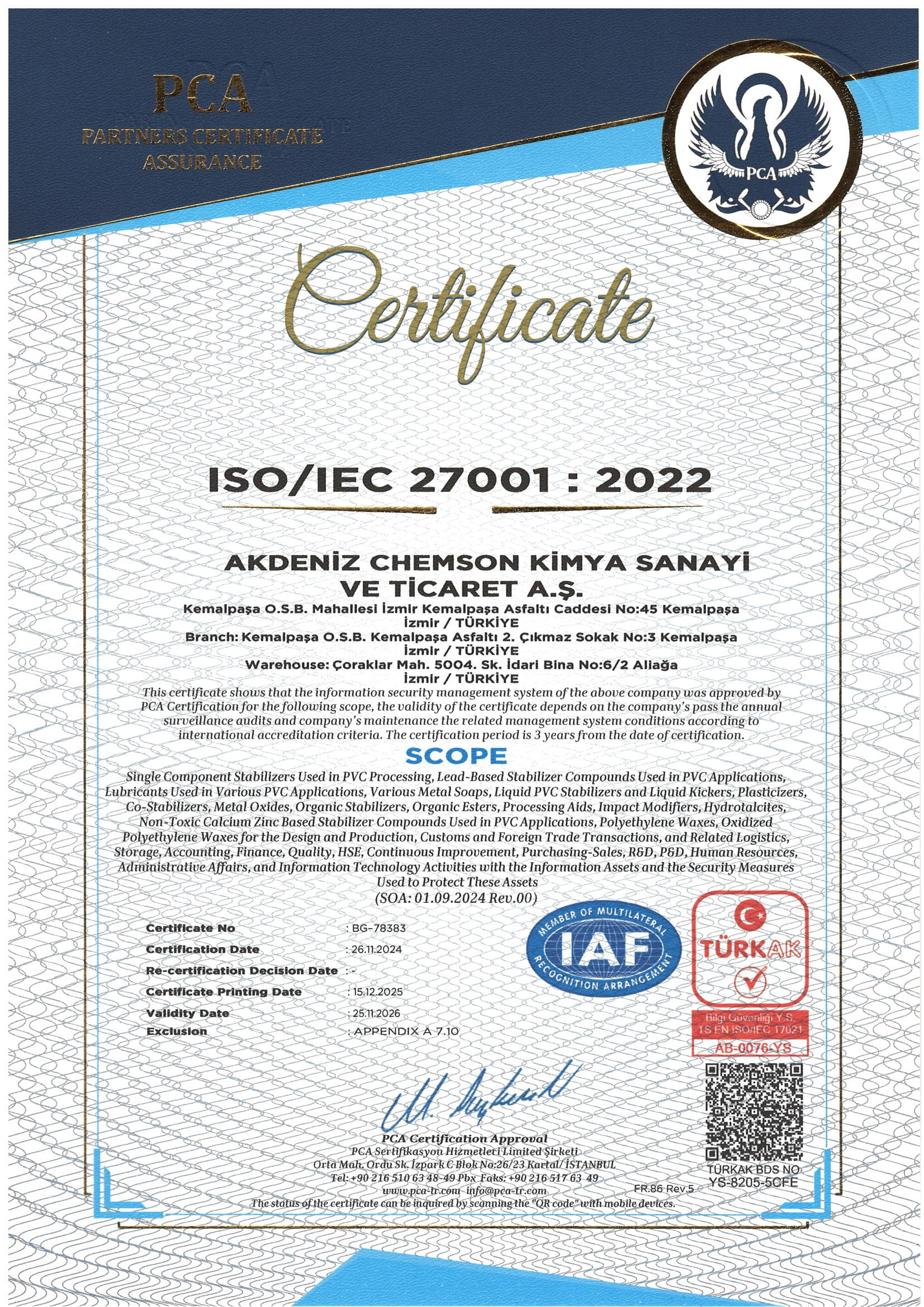 Akdeniz Chemson Kimyasal ISO 27001
