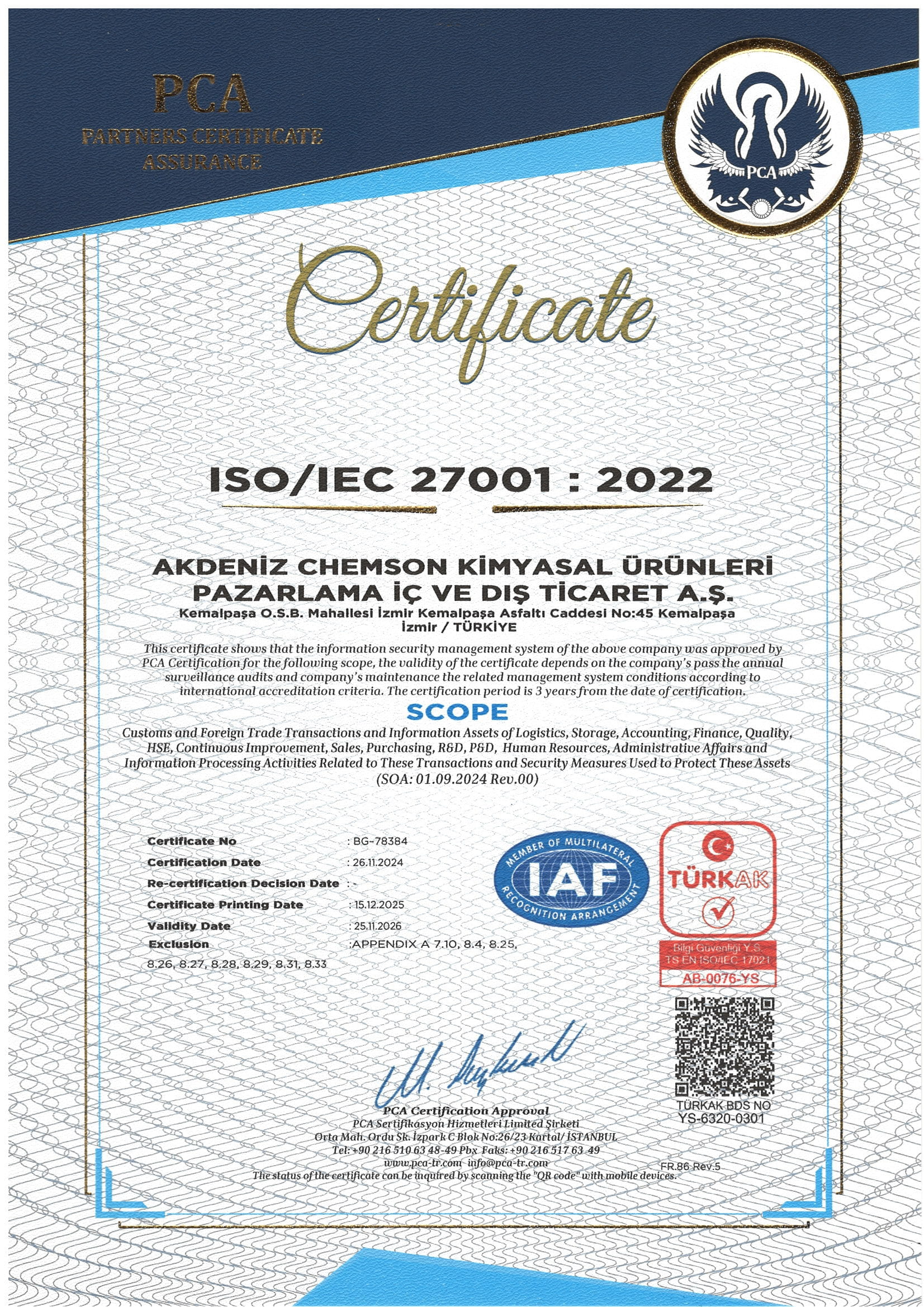 Akdeniz Chemson Kimya ISO 27001