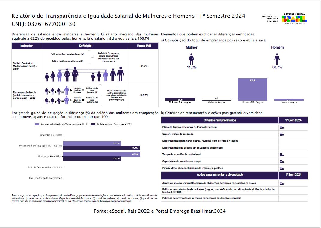Relatório de Transparência e Igualdade Salarial de Mulheres e Homens – 1º Semestre 2024