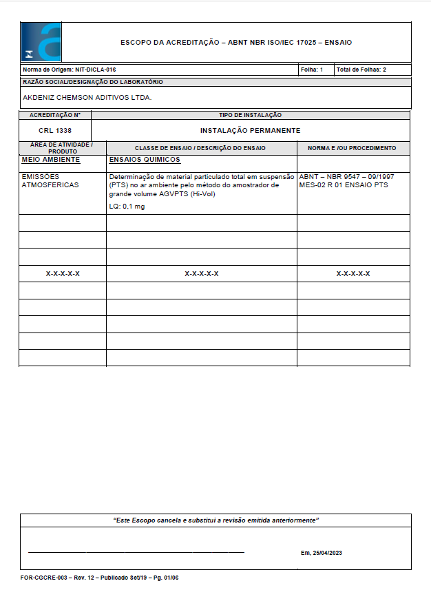 Escopo da Acreditação – ABNT NBR ISO/EIC 17025 – ENSAIO