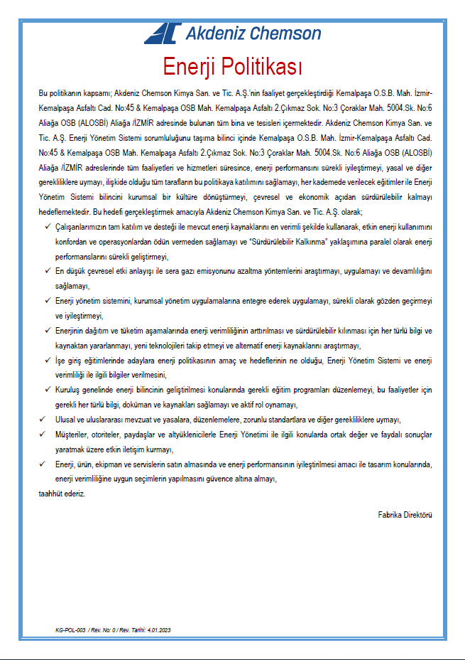 Akdeniz Chemson Tedarikci Davranış Kuralları