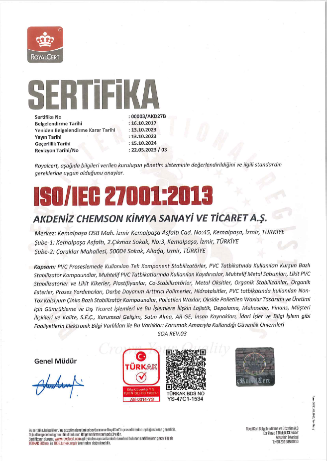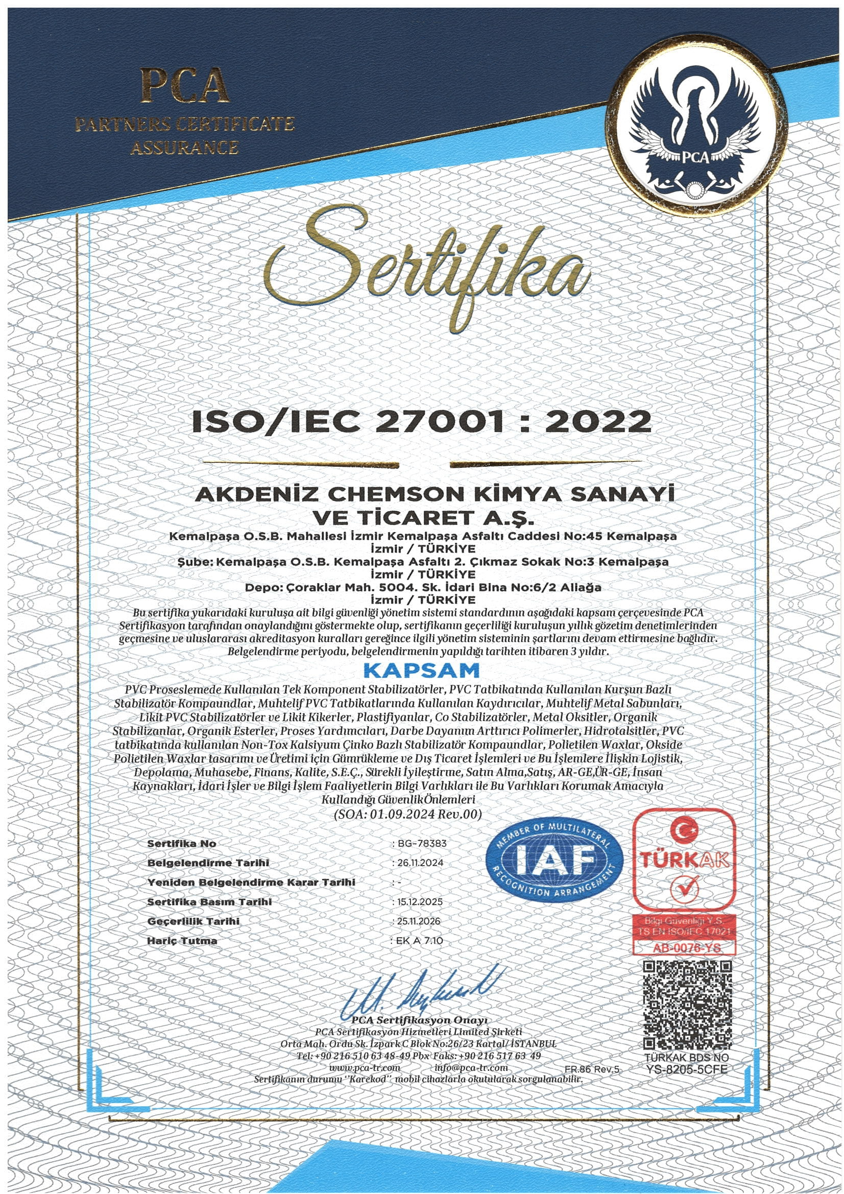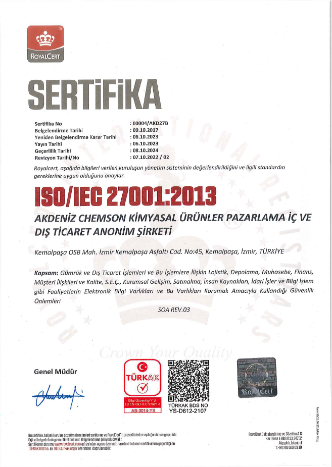 Akdeniz Chemson Kimyasal ISO/IEC 27001