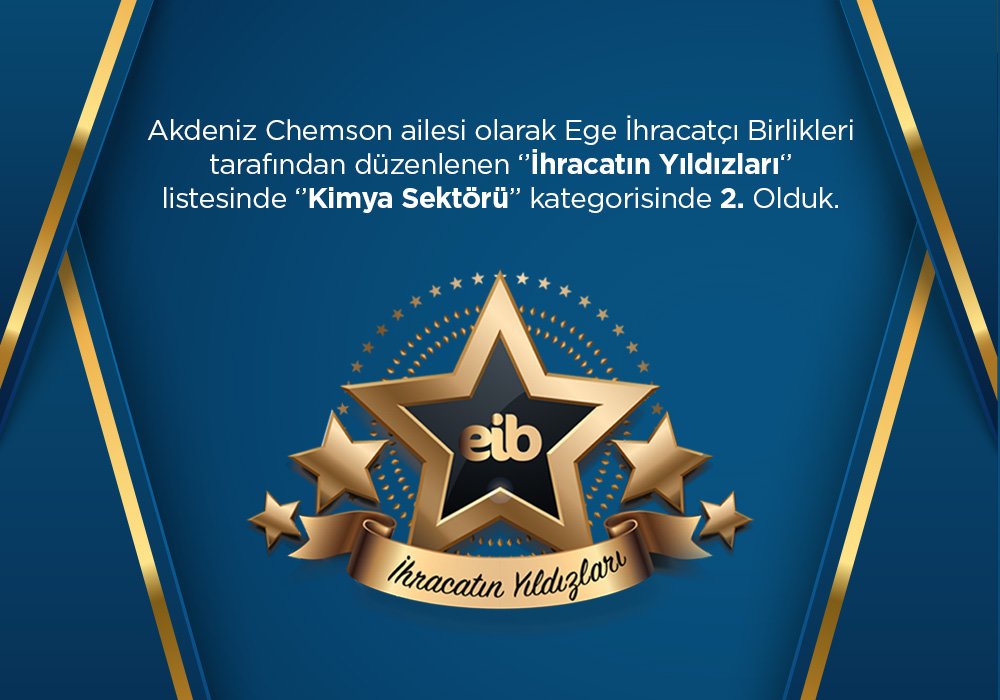 OYAK集团化学公司之一的Akdeniz Chemson出口总值为101,398,483美元,在爱琴海出口商协会举办的出口之星奖中排名第二,是该地区最大的化学品出口商之一。